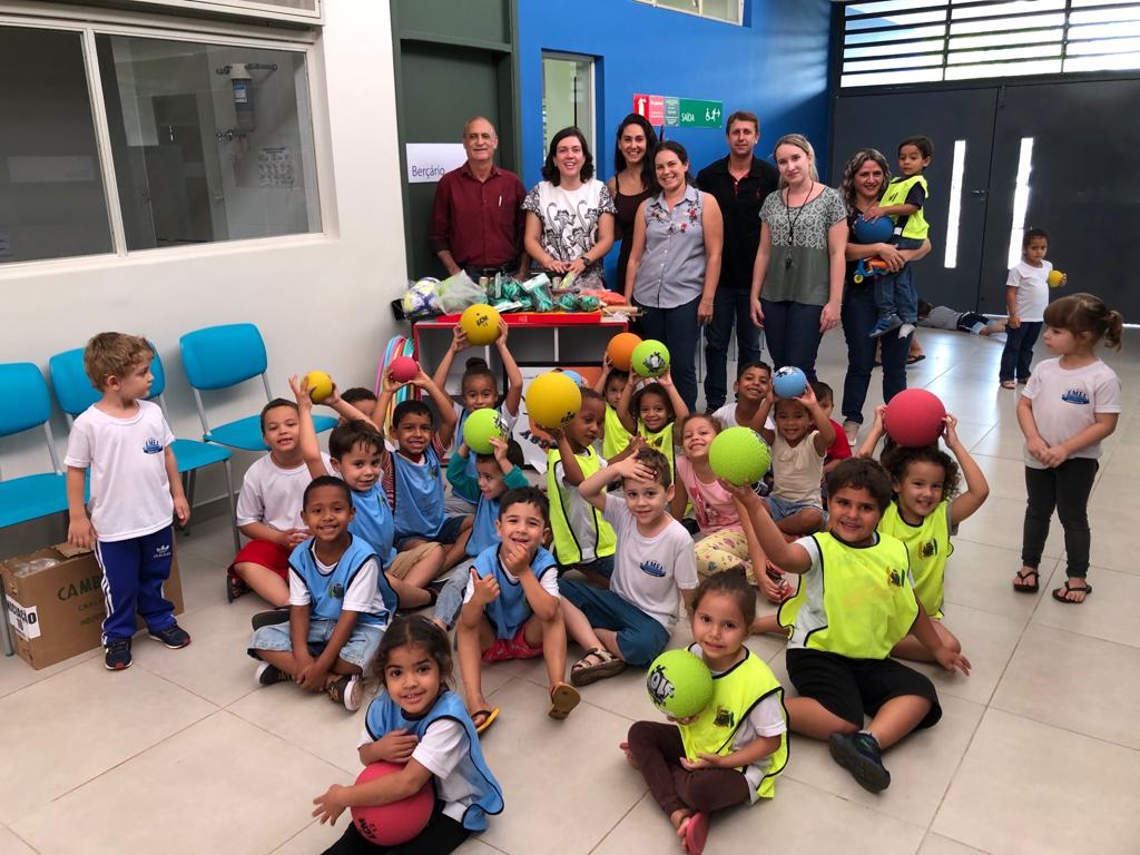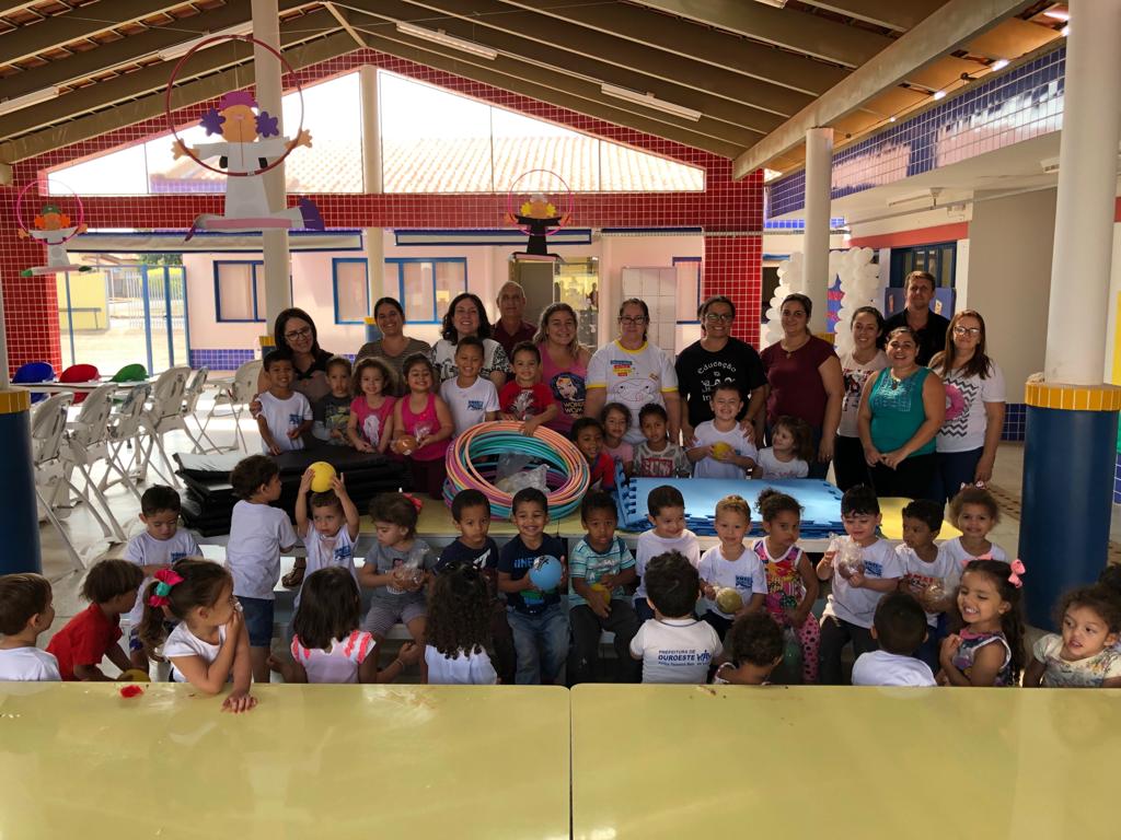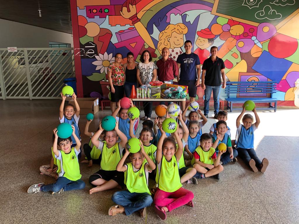 Ao todo, seis escolas da rede municipal de ensino receberam um kit de material esportivo.