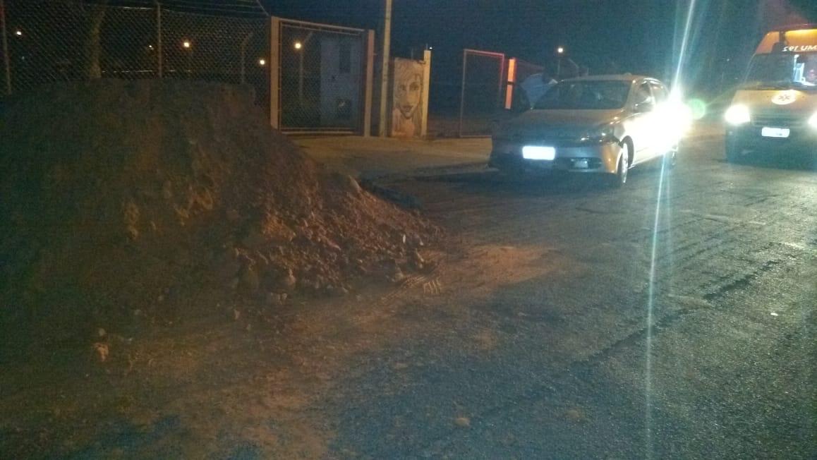 Na noite da última quinta-feira, 22, o motorista de um veículo Gol, de cor prata, bateu contra um amontoado de terra deixado na Rua Sebastiana J.Silva, no Jardim Ana Luiza, em Fernandópolis.