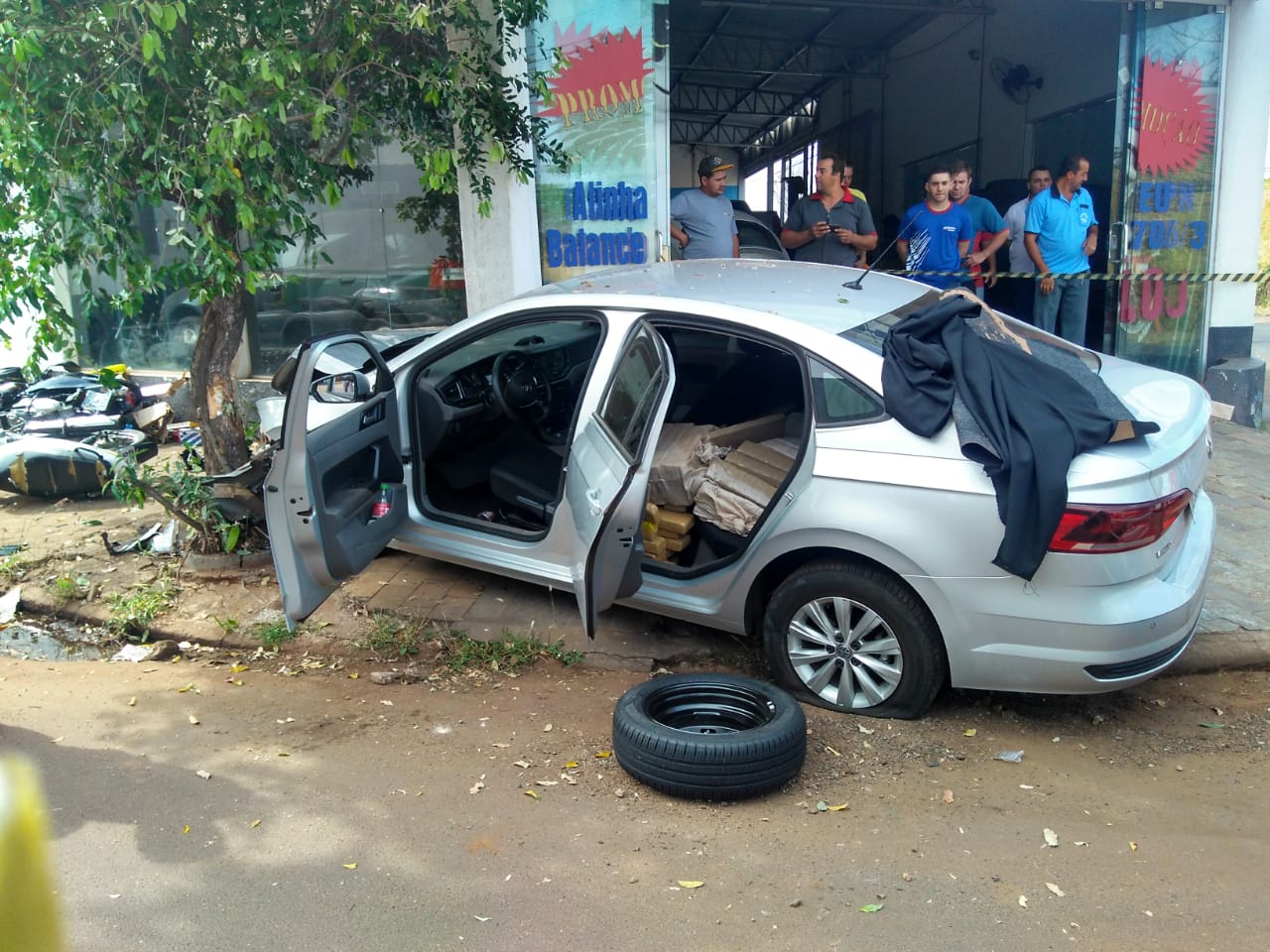 A polícia perseguiu o veículo, que entrou no município de Jales e só parou após bater em uma árvore e em algumas motocicletas que estavam estacionadas. Dentro do automóvel, foram encontrados 563 tabletes de maconha, totalizando 548 quilos.