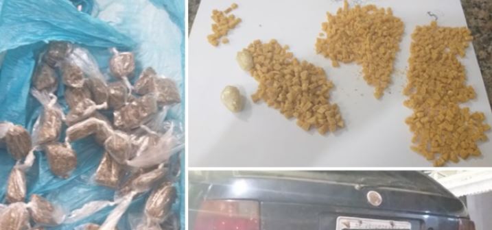 No interior do GM/Astra, placas de Votuporanga, nada foi encontrado, mas os policiais conseguiram localizar os objetos jogados na rua durante o acompanhamento e encontram 49 porções de maconha, 753 pedra de crack, além de duas pedras maiores e R$ 100 reais em dinheiro.
