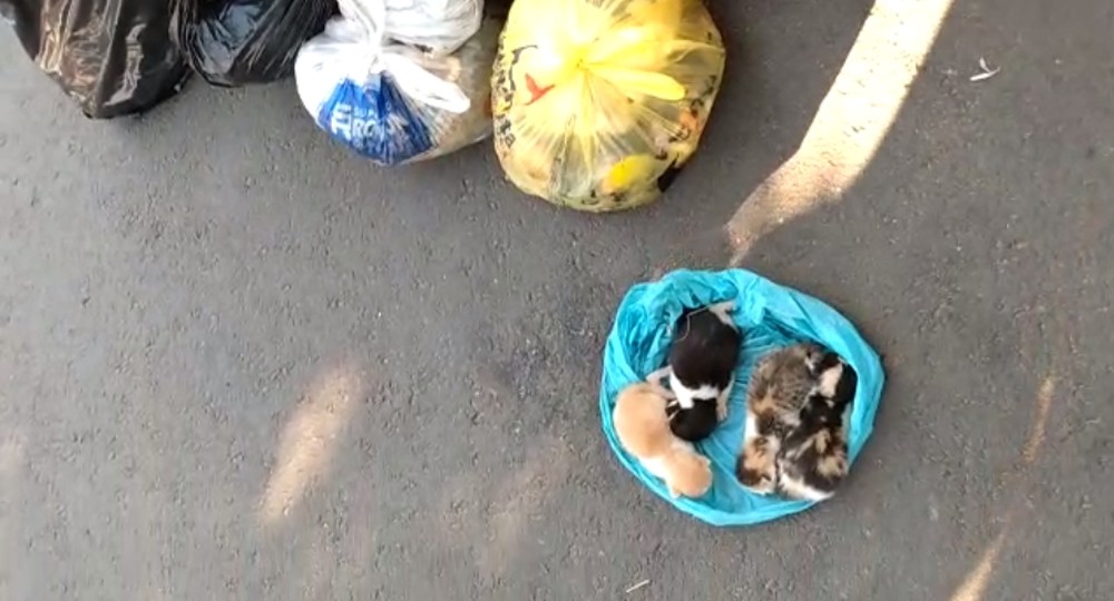 Filhotes de gatos são achados dentro de sacolas plásticas