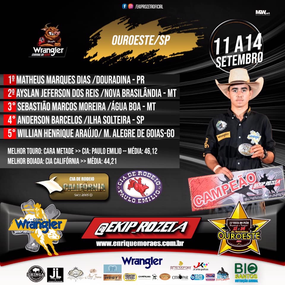 A Prefeitura de Ouroeste mais uma vez foi parceira da Comissão Organizadora, o que garantiu o sucesso da festa. A EKIP ROZETA – Enrique Moraes, Cia. De Rodeio Paulo Emílio, Cia. Rodeios Scatolin estiveram presentes, assim como boiada contratada Cia. Rodeio Califórnia e Cia. Rodeio Vilela, melhores tropas e equipe salva vida. Os juízes de rodeio foram Marcelo Araújo e Leonardo Camargo.
