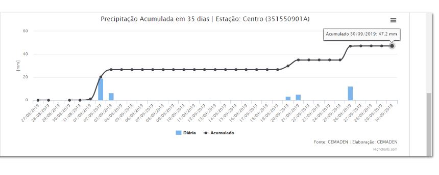 Mesmo com a chuva que caiu no início e no fim de setembro, os números mostram uma queda no acumulado de 2019. Em Fernandópolis choveu 47,2 mm, contra 81,8 mm do mesmo período do ano passado; uma redução de 73%.