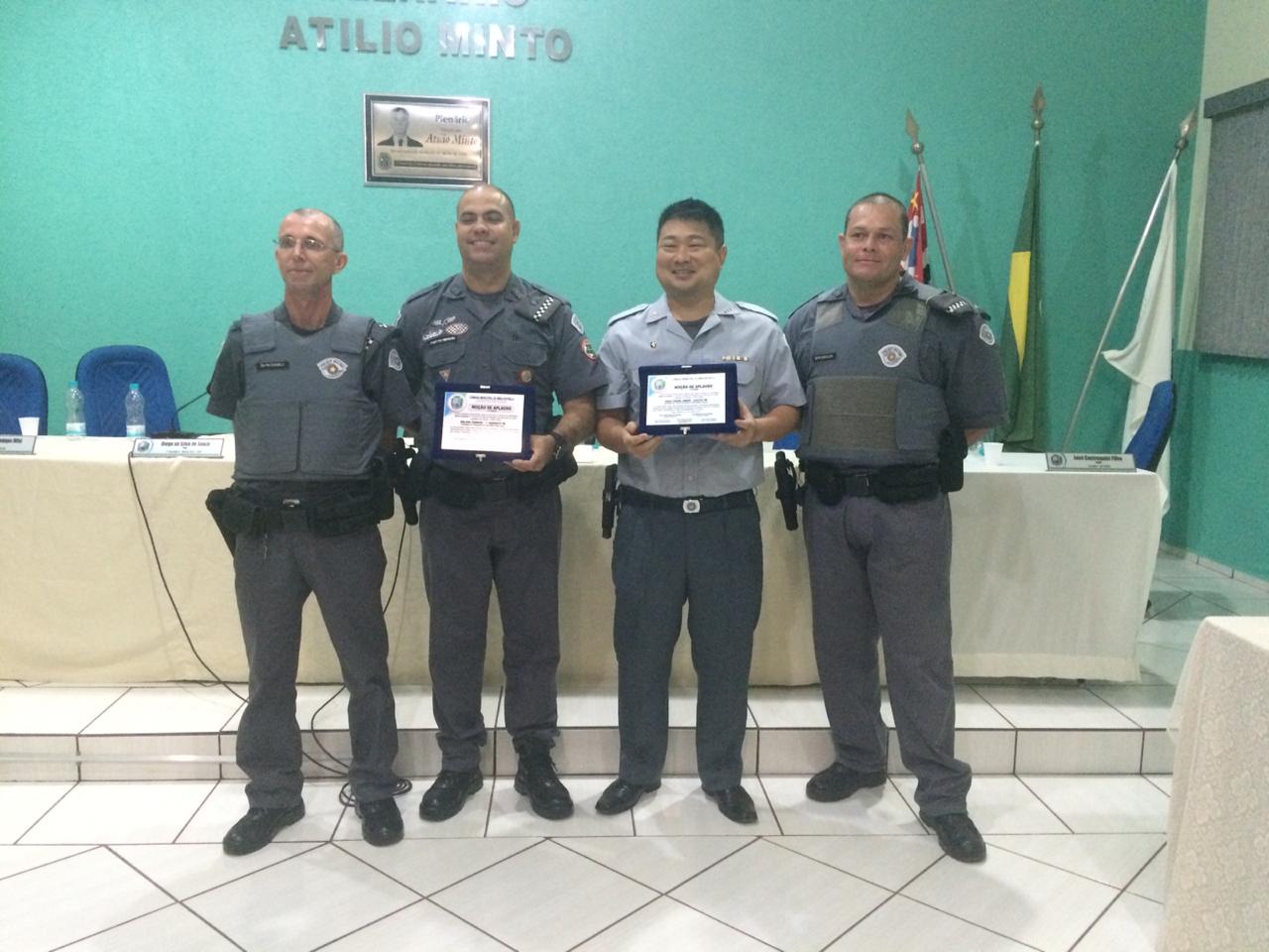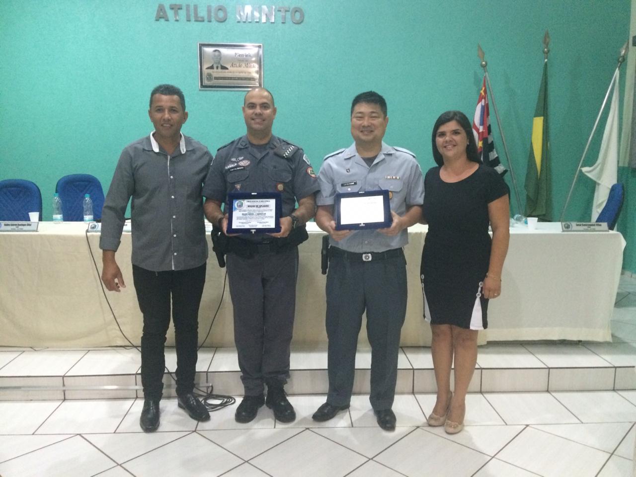 Na noite desta segunda-feira, 07, na Câmara Municipal de Mira Estrela, o investigador de Polícia Civil, José Maria, o Capitão Takebe, Sargento Ferreira e o Major Fávero foram homenageados com título de Moção de Aplausos em uma sessão solene.