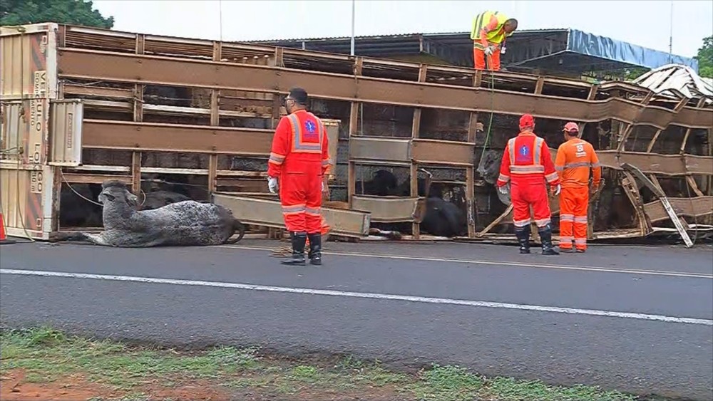 Um acidente envolvendo uma carreta e um caminhão carregado com cabeças de gado deixou animais mortos na rodovia BR-153, em Bady Bassitt, nesta terça-feira, 08.
