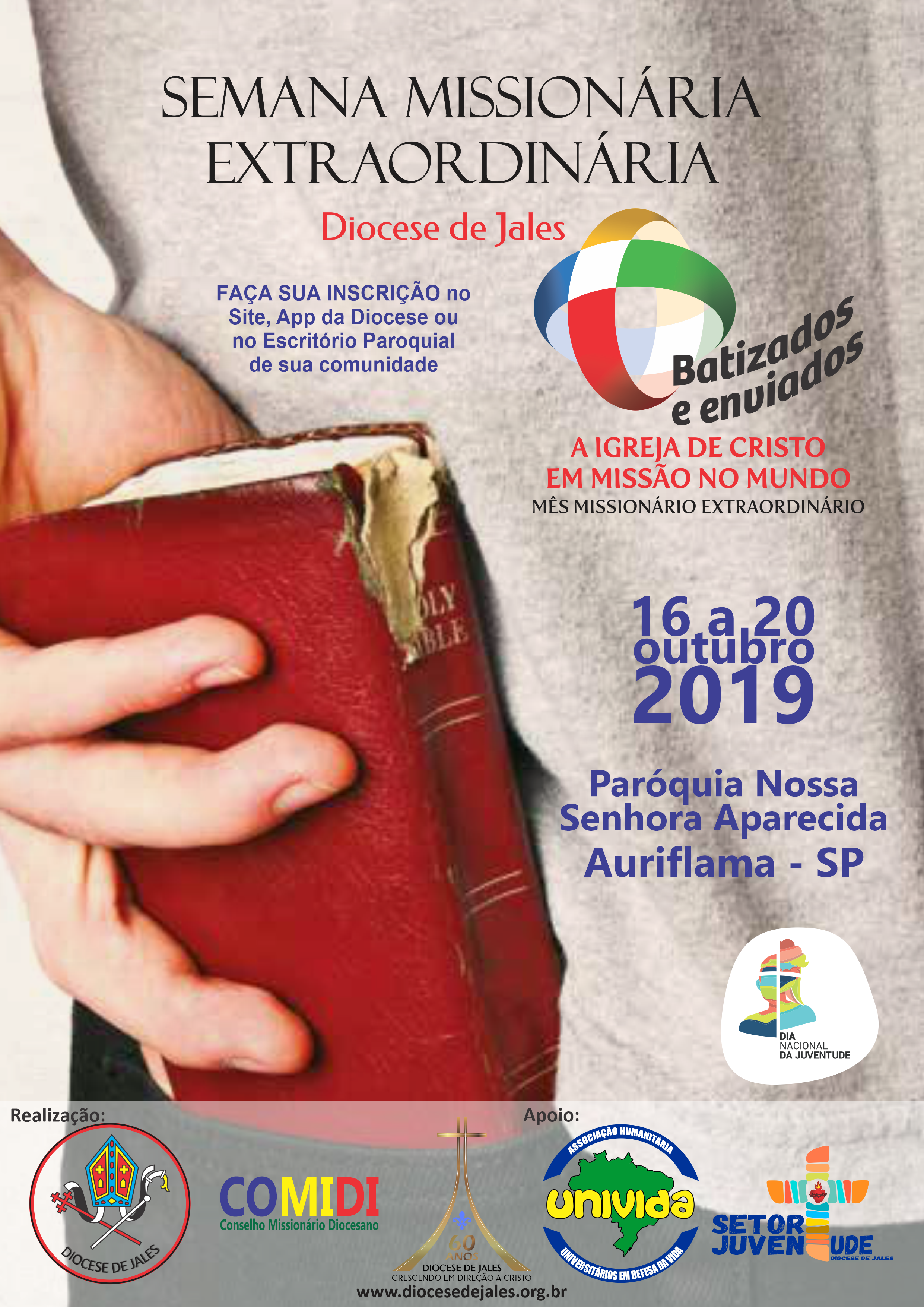O Papa Francisco no dia 22 de outubro de 2017, Dia Mundial das Missões, durante o Angelus, anunciava publicamente para toda a Igreja sua intenção de proclamar um Mês Missionário Extraordinário em outubro de 2019. A Diocese de Jales respondendo o seu sim, ao pedido do Papa, realizará entre os dias 16 e 20 de outubro a Semana Missionária Extraordinária, na Paróquia Nossa Senhora Aparecida, em Auriflama.