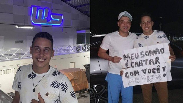 "Wesley começou a cantar e eu levantei meu cartaz escrito 'meu sonho é cantar com você'. Foram mais de duas horas com o braço levantado, eu descansava por apenas 30 segundos e imediatamente levantava os braços novamente. Meu esforço chamou a atenção dele", relembra Felipe, que cantou com Safadão uma de suas composições.