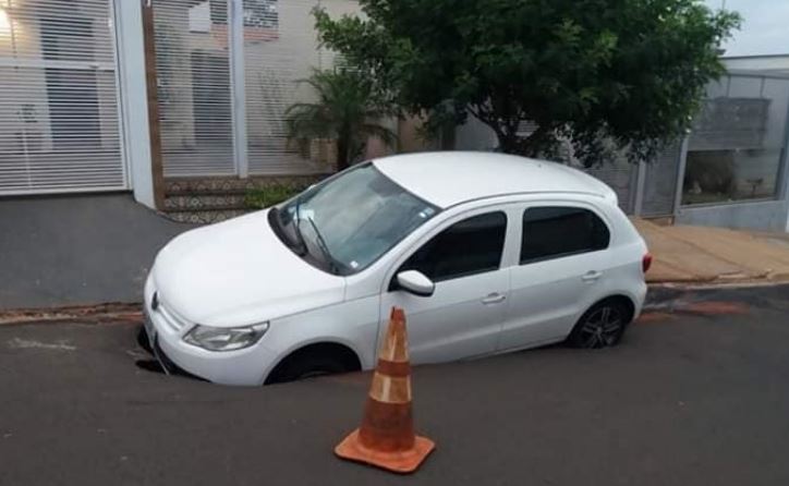 De acordo com informações, o buraco de aproximadamente 2m, com 1,5m de profundidade só não “sugou” completamente o veículo, um Volkswagen/Gol com placas de São José do Rio Preto, devido a sarjeta, que sustentou parte do automóvel.