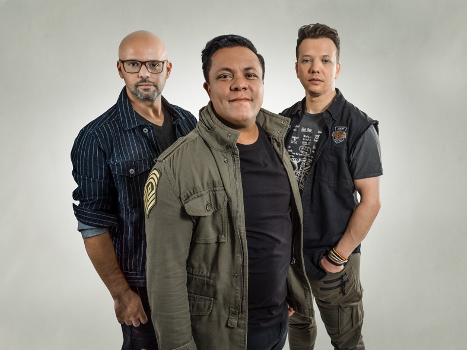 Discopraise tem Clayton Olee (vocalista), Cláudio Gomez (pianos) e Jota Albuquerque (baixo). Foto: Divulgação