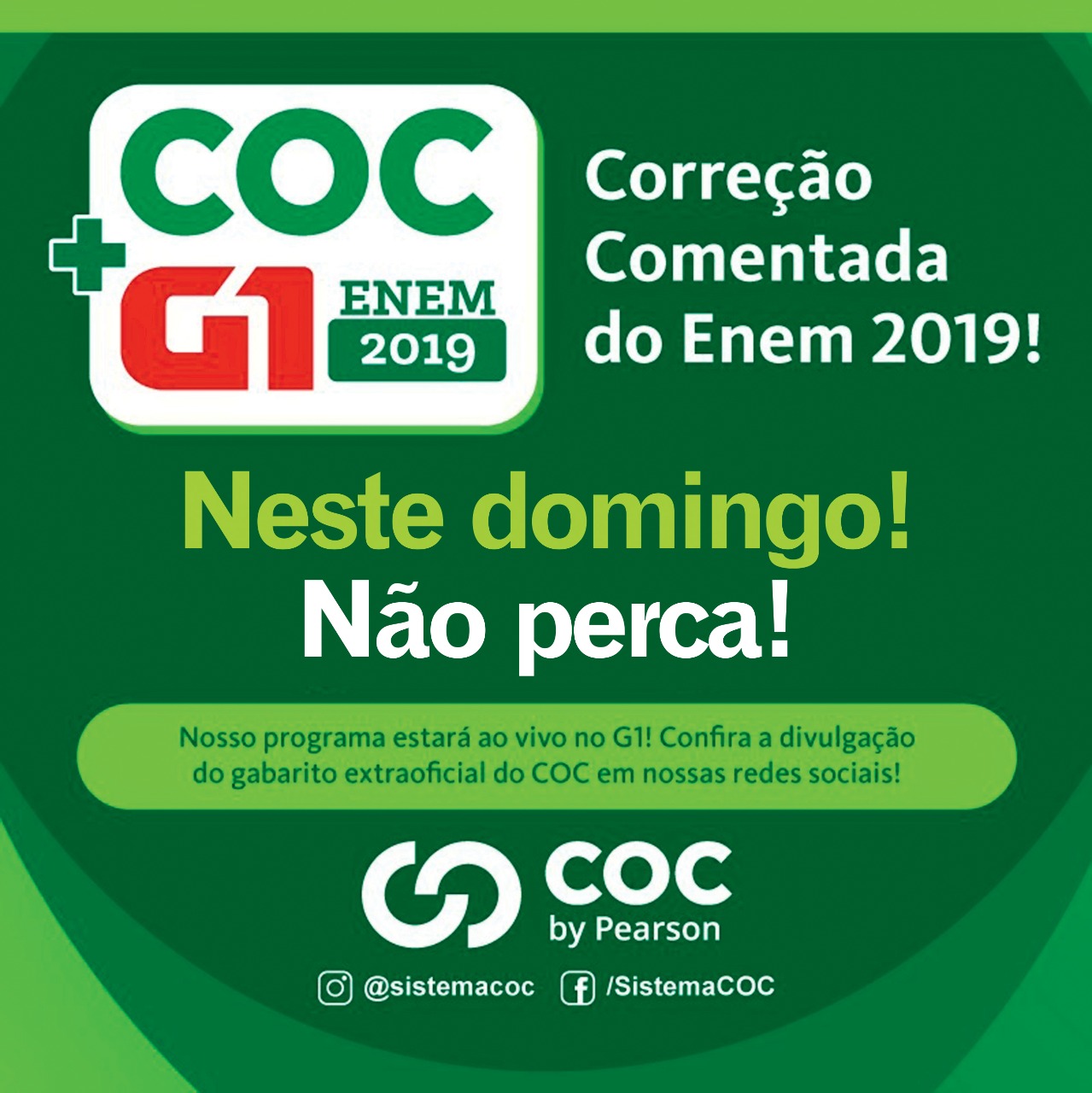Uma parceria entre o site G1, da Globo.com e o Sistema COC de Ensino proporcionará a correção das provas do Enem 2019 que acontecem neste domingo, 03, em primeira mão.