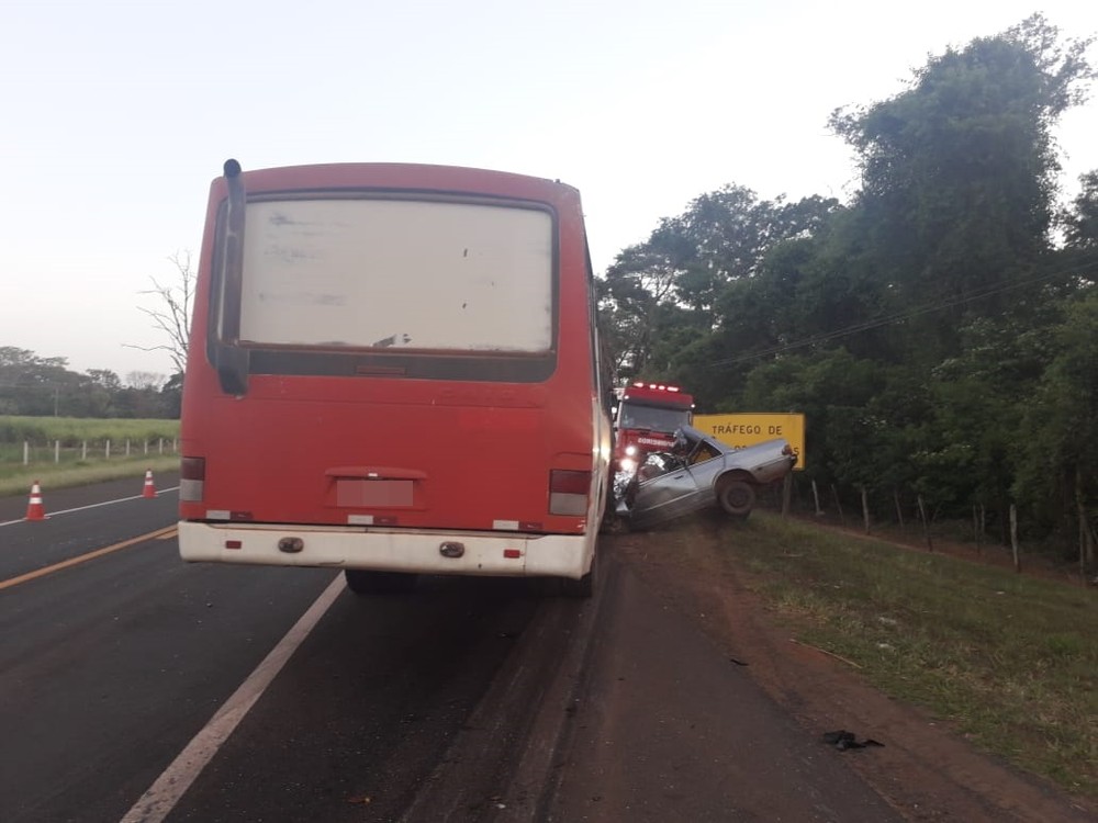 Homem morre ao bater carro de frente com ônibus de trabalhadores rurais em rodovia