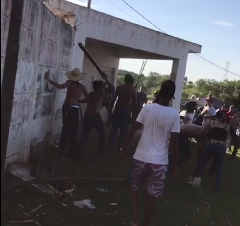 A organização do evento informou que algumas pessoas se desentenderam porque um homem teria urinado na arquibancada. Com isso, houve uma confusão e pessoas se envolveram em uma briga com pedaços de madeira.