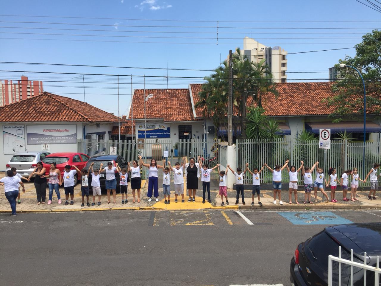 Para finalizar as atividades do mês de outubro com chave de ouro, a EMEF Coronel Francisco Arnaldo da Silva realizou o ‘Dia de Ação de Graças’, celebrando a vida e agradecendo os bons frutos do ano. A atividade aconteceu nas unidades I e II, oportunidade em que as crianças, em uma grande corrente, abraçaram a escola simbolizando a corrente do bem e o amor.