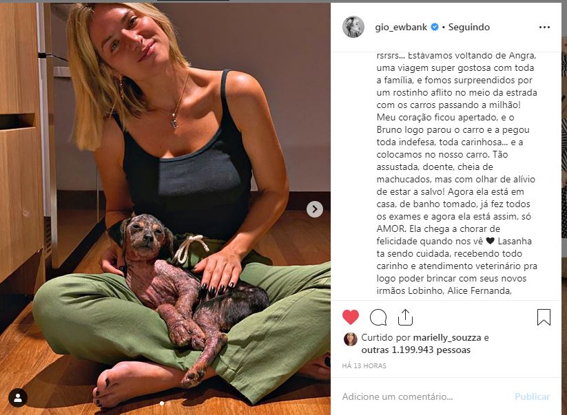 A ONG Garra Animal elogiou a atitude do casal. "Não existe sensação melhor nessa vida do que poder salvar outra vida. Amamos vocês", afirmou. Gio Ewbank também comentou a publicação do marido: "Coisinha mais linda e amada."