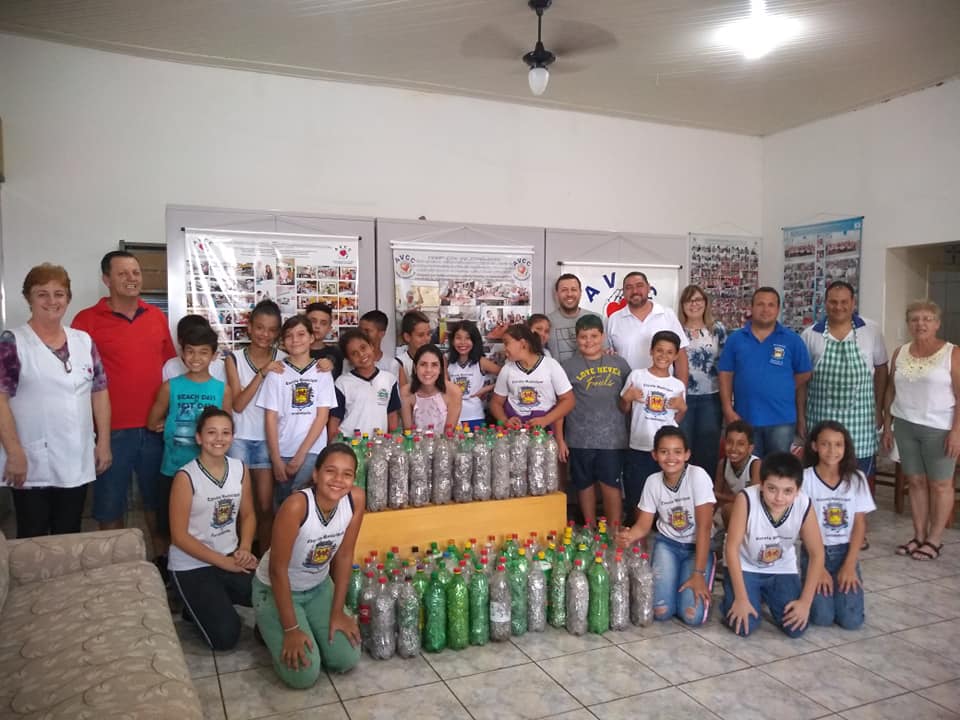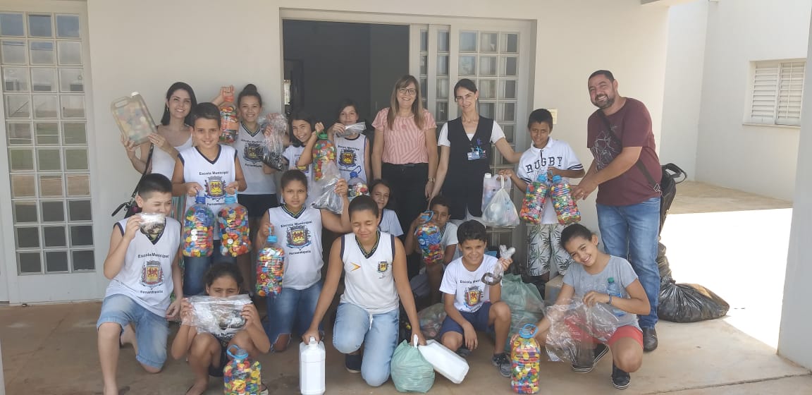 As crianças e equipe de profissionais da EMEF José Zantedeschi, em um gesto de solidariedade, juntaram e doaram 134 garrafas pet cheias de lacres de alumínio, 55 mechas de cabelo, cerca de 30 mil tampas plásticas, 20 bonés, lenços e novelos de lãs.