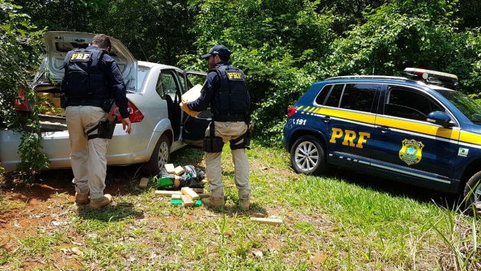 Em nota, a PRF comunicou que “diversos tijolos de maconha foram encontrados no porta-malas. A pesagem será feita após o encerramento das buscas pelo motorista fugitivo, mas é estimada em 200 kg”.