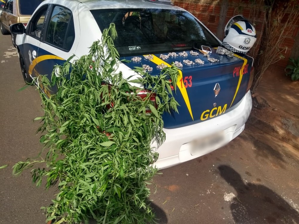 Guarda Civil flagra dupla com pé de maconha em quintal de casa durante ocorrência de infração de trânsito