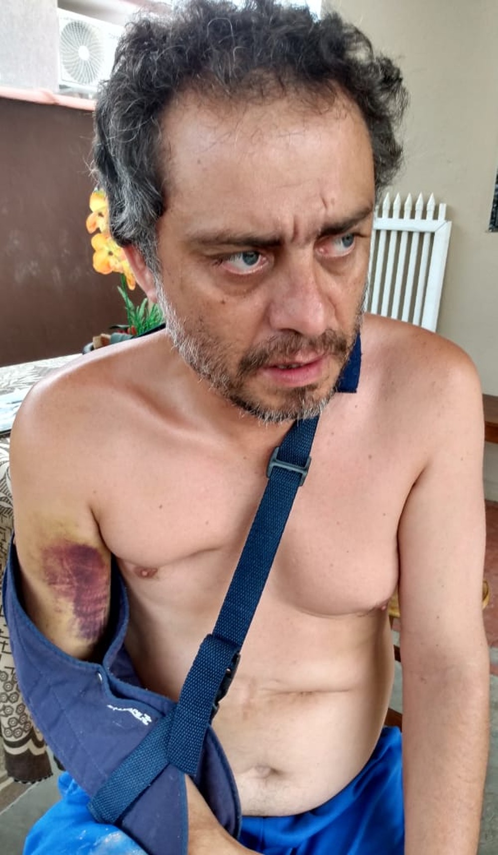 "Ele acertou chutes na cabeça que abriram um corte no meu queixo, e também acabou quebrando meu braço, o ombro e duas costelas. Só parou quando as pessoas começaram a intervir, aí entrou no carro dele e fugiu quando chamaram a Polícia Militar. Vou ficar pelo menos dois meses sem poder trabalhar nessa situação", relata o servidor.