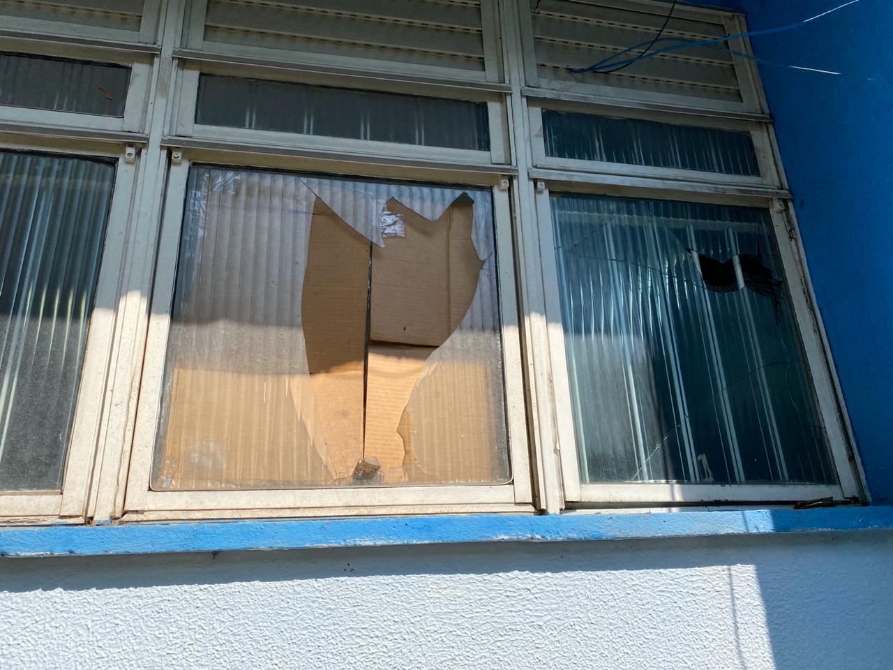 Prefeitura de Cajamar. UBS Polvilho. Janelas quebradas e papelão sendo utilizado como vedação