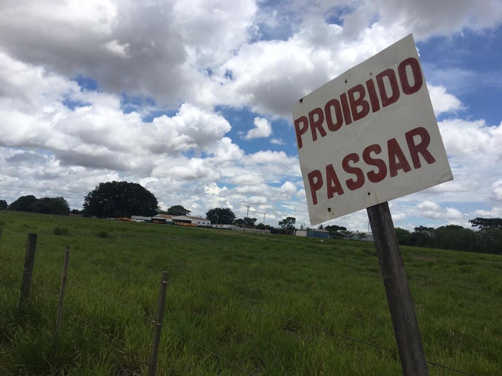 Placa sinalizando a restrição de passagem de pedestres. Foto: Michele Bacelar/TV TEM