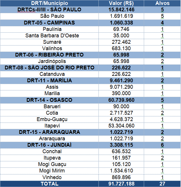 A ação acontece simultaneamente em nove Delegacias Regionais Tributárias (DRTs) do Estado de São Paulo e tem como alvos 27 contribuintes que teriam utilizado créditos de ICMS de maneira irregular. Os 35 agentes fiscais que participam da operação Fake News estão notificando os contribuintes a apresentarem a comprovação/vistos eletrônicos referentes aos créditos efetuados.