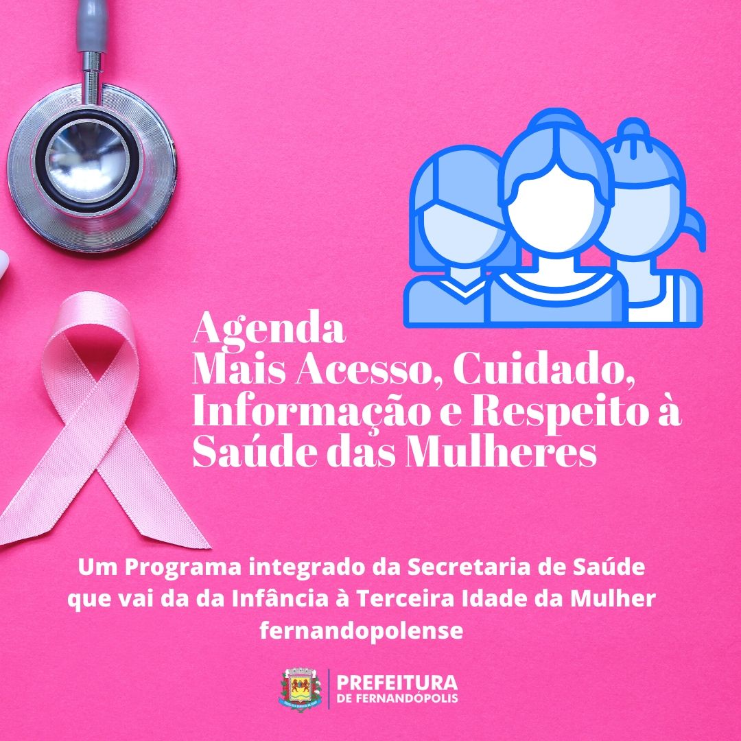 O Município de Fernandópolis foi contemplado com o projeto “Agenda Mais Acesso, Cuidado, Informação e Respeito à Saúde das Mulheres- Agenda Saúde Sexual e Saúde Reprodutiva (SSSR)”. Entre os objetivos do ‘Agenda Mais Acesso”, uma das prioridades é organizar os processos de trabalho na Atenção Básica, considerando a mulher desde a infância até a fase da terceira idade; organizando ações de educação em saúde para adolescentes junto ao programa Saúde na Escola; e incluir a população da Unidade Básica de Saúde (UBS) no planejamento, execução e avaliação das ações que visam o bem estar das mulheres.