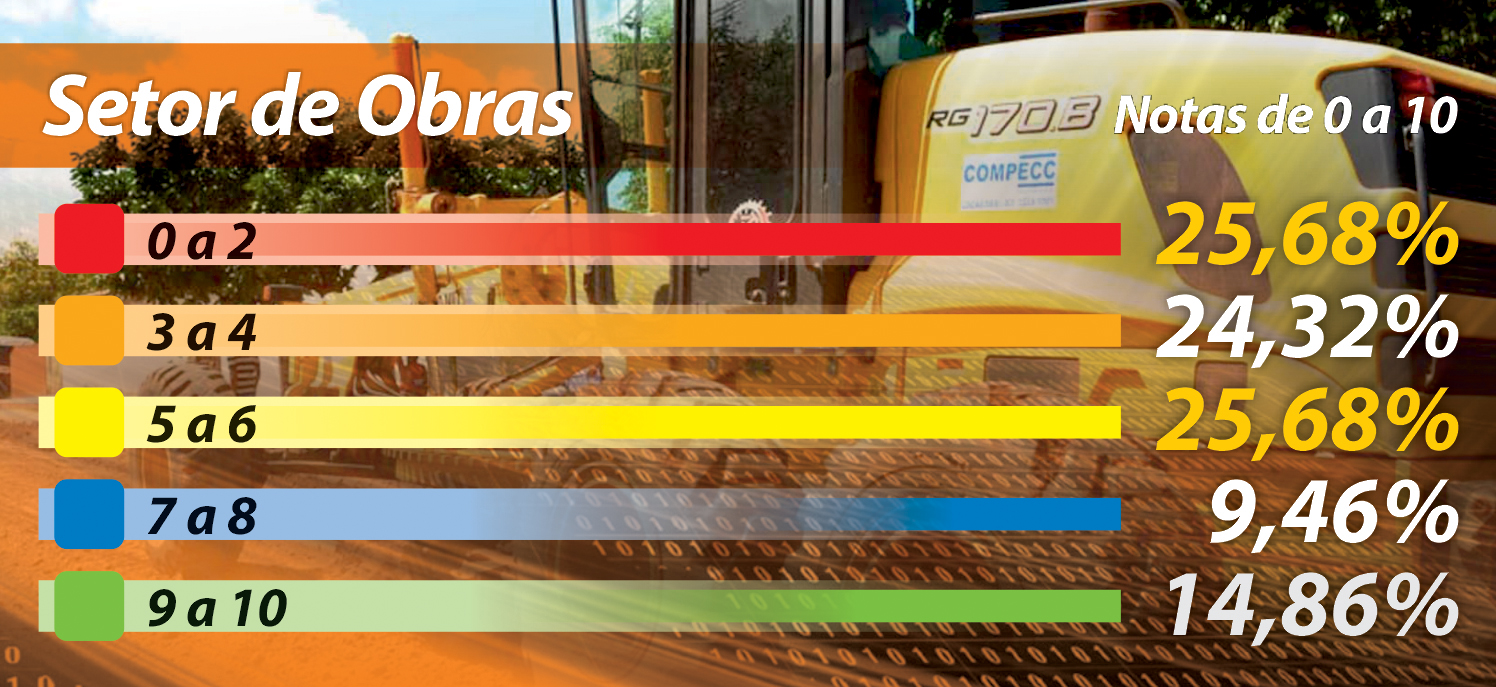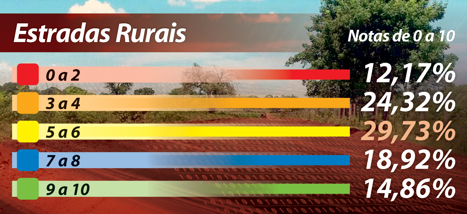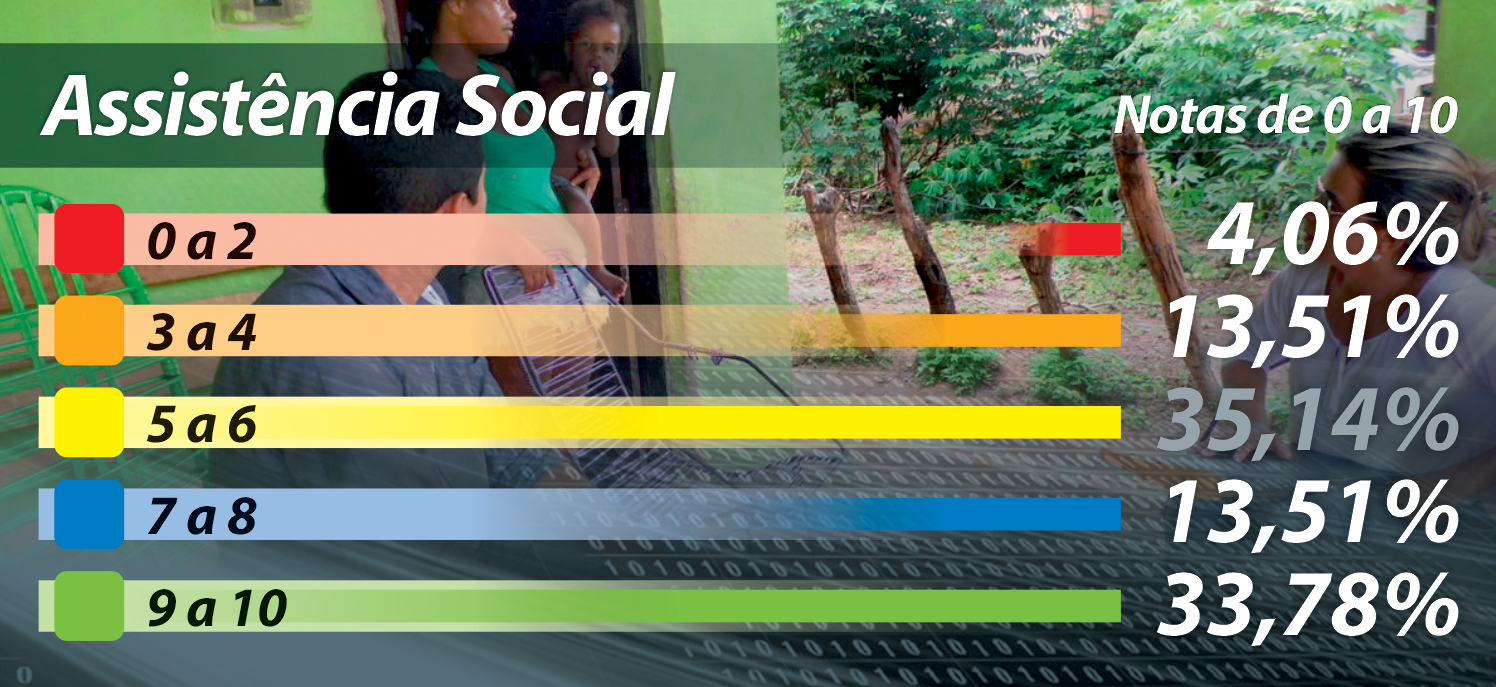 Outro tópico objeto da pesquisa foi a avaliação dos eleitores do município quanto a diversos setores/secretarias de Pedranópolis. O mais bem avaliado, disparado, foi o “Assistência Social”. Ele obteve notas nove ou dez de 33% dos entrevistados. Após vem a “Educação Municipal” com 27% de notas nove ou dez, seguido de “Transporte Escolar e Saúde” com 25%. Os destaques negativos ficaram para “Obras e Estradas Rurais” com apenas 14%.