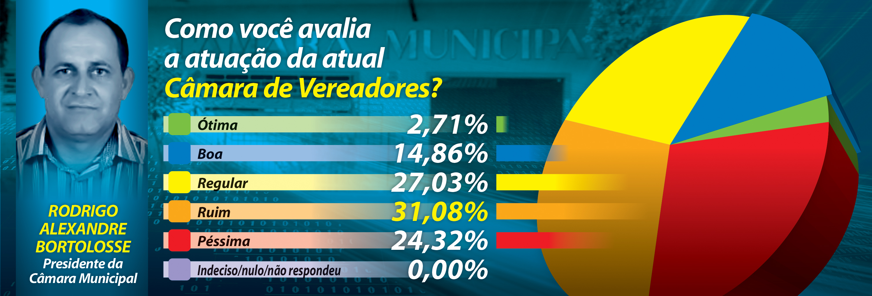 A avaliação dos trabalhos desenvolvidos pelos vereadores frente ao Legislativo Municipal ganharam avaliação absolutamente simétrica ao do Executivo.