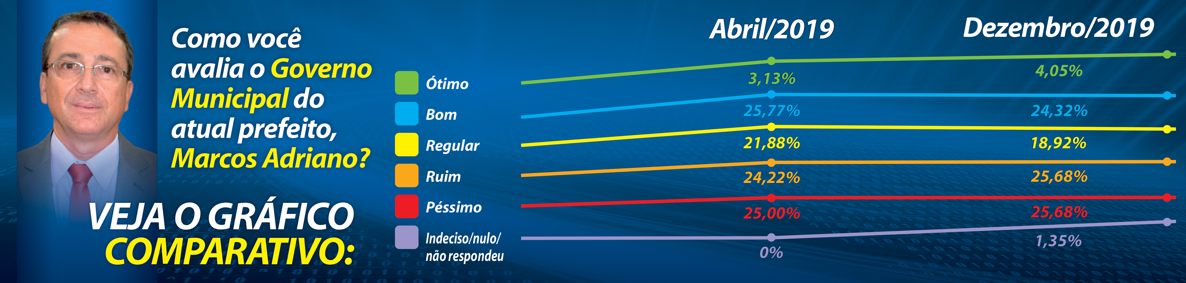 No comparativo com idêntico procedimento de avaliação popular publicado em Abril deste ano, temos uma certa estabilidade dos números. Naquela oportunidade, como nesta, foram ouvidos 296 eleitores que confirmaram altos índices de reprovação administrativa do atual governo pedranopolense. O índice dos que o avaliam como “ótimo” foi de 3% para 4%; o de “bom” caiu de 25% para 24%; o de “regular” de 21% para 18%; o de “ruim” subiu de 24% para 25% e o de “péssimo” manteve-se na casa dos 25 pontos (confira no quadro acima).