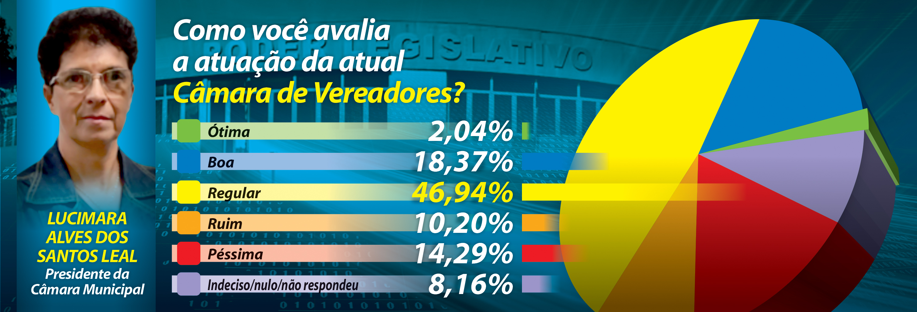 Por outro lado, o Parlamento Municipal não obteve a aprovação popular atribuída ao Executivo. Apenas 20% dos eleitores de Macedônia classificam a atuação da Câmara Municipal como “ótima” ou “boa”. Esse índice é 3,9 vezes menor que o registrado para o Executivo Municipal. Na pesquisa divulgada em Abril deste ano esse mesmo índice foi de 22%. No polo oposto, 24% avaliam-na como “ruim” ou “péssima”. Neste tópico constata-se uma importante regressão da reprovação aos trabalhos dos edis. Anteriormente o número era de 47%. No intermédio estão 46% que afirmaram ser “regular” (contra 27% da pesquisa anterior).
