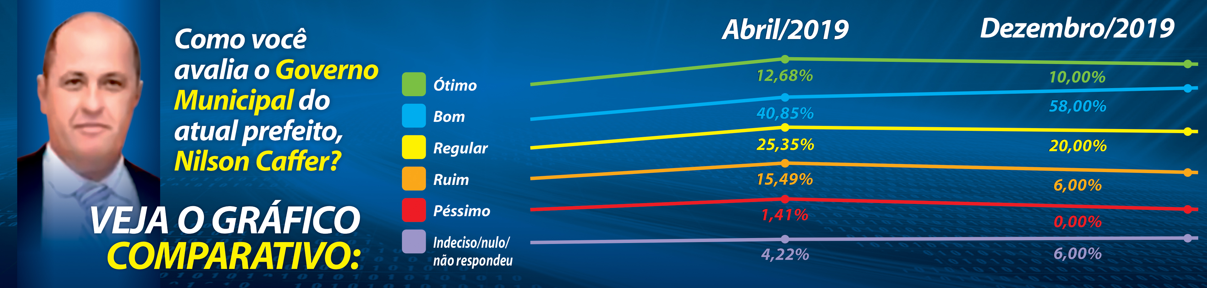 Aprovação da administração Nilson Caffer salta de 53% para 68%