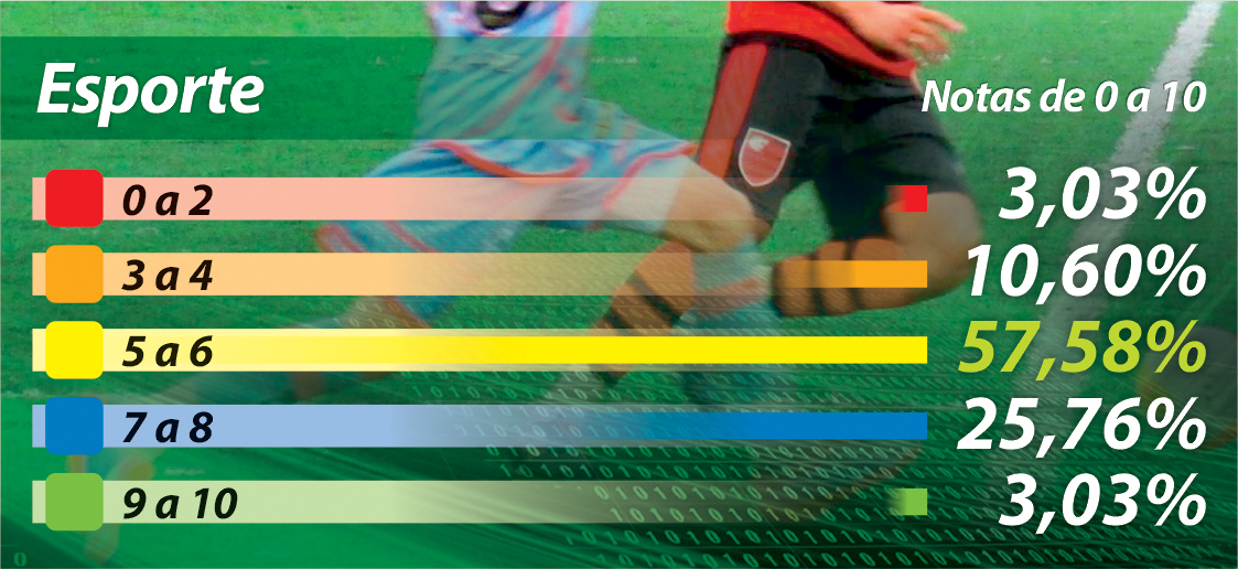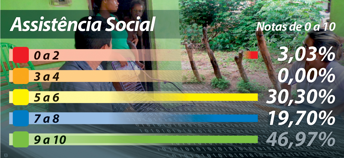 Outro tópico objeto da pesquisa foi a avaliação dos eleitores do município quanto a diversos setores/secretarias que compõem a administração de São João das Duas Pontes. O mais bem avaliado, disparado, é o setor de “Transporte Escolar” com 48% de notas 9 ou 10 atribuídas pelos respondentes, seguindo pela “Assistência Social” com 46% e “Educação” com 45%. Por outro lado o setor de “Esportes” foi o mais reprovado com apenas 3% de notas máximas. Confiram, nos gráficos abaixo, os dados completos.