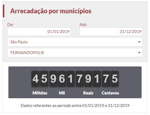 Os fernandopolenses pagaram em 2019 menos impostos do que em 2018, de acordo com os números do Impostômetro da Associação Comercial de São Paulo (ACSP). No ano que se encerrou na terça-feira, 31, os moradores de Fernandópolis pagaram, somados, R$ 45.961.791,75. No ano de 2018 a conta fechou em R$ 46.796.125,86. O valor dos municípios na ferramenta representam a arrecadação em impostos municipais, como IPTU, ISS e outros.