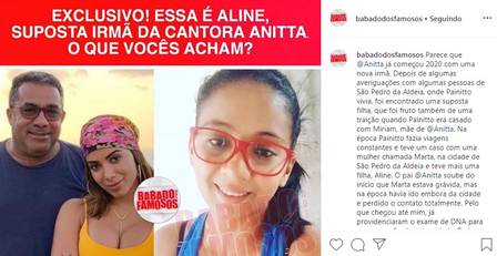 O perfil detalha que, além de Anitta, Renan e Felipe, Mauro seria pai de uma jovem chamada Aline, fruto de um relacionamento que ele teve com uma mulher de nome Marta, moradora de São Pedro da Aldeia, na Região dos Lagos do Rio. O Instagram divulgou, inclusive, a foto da suposta filha de Painitto.