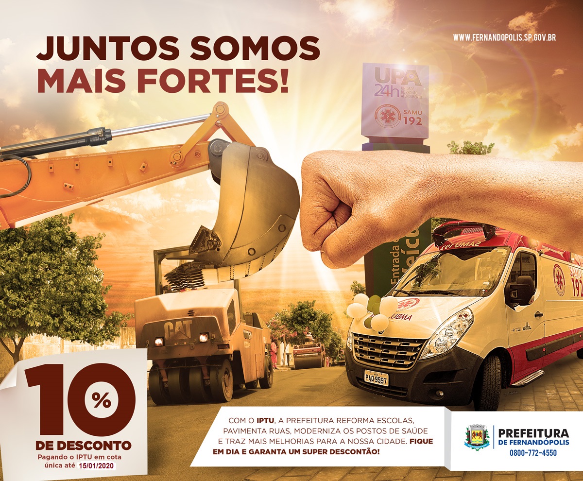 Vence no dia 15 de janeiro a primeira parcela do IPTU (Imposto Predial e Territorial Urbano) de Fernandópolis. O contribuinte pode ainda optar pelo pagamento de cota única na mesma data, com 10% de desconto.