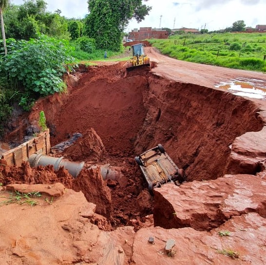 A prefeitura está no local com máquinas fazendo a retirada do veículo da cratera. A ponte ficou interditada nos dois sentidos.