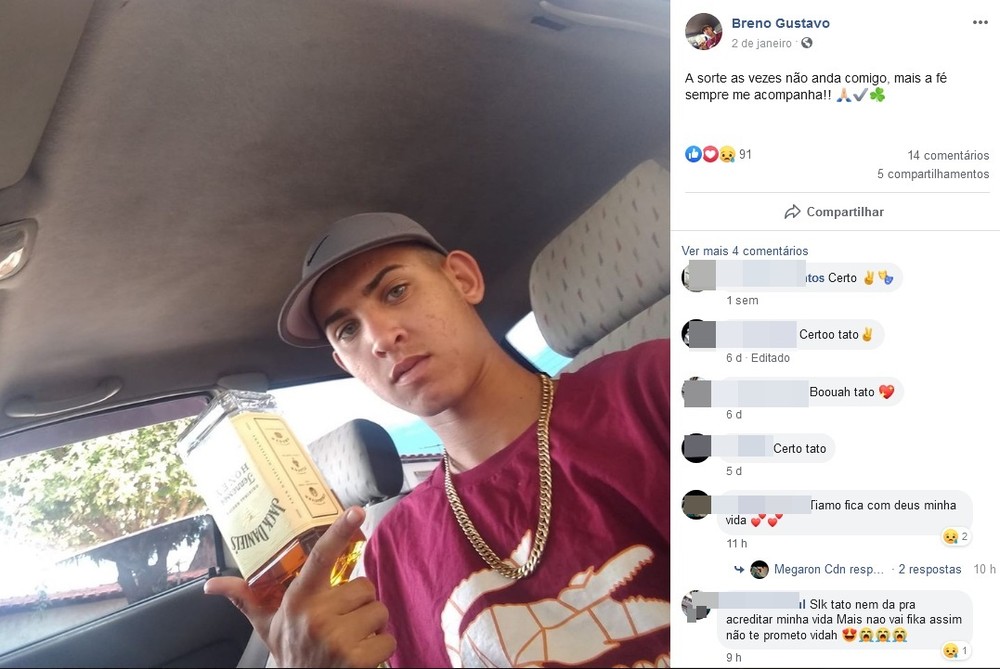 Segundo consta a ocorrência, Breno tentou escapar dos disparos e correu para um posto de combustíveis, mas o autor do crime foi atrás dele. Além de baleado, o jovem foi agredido com a coronha da arma.