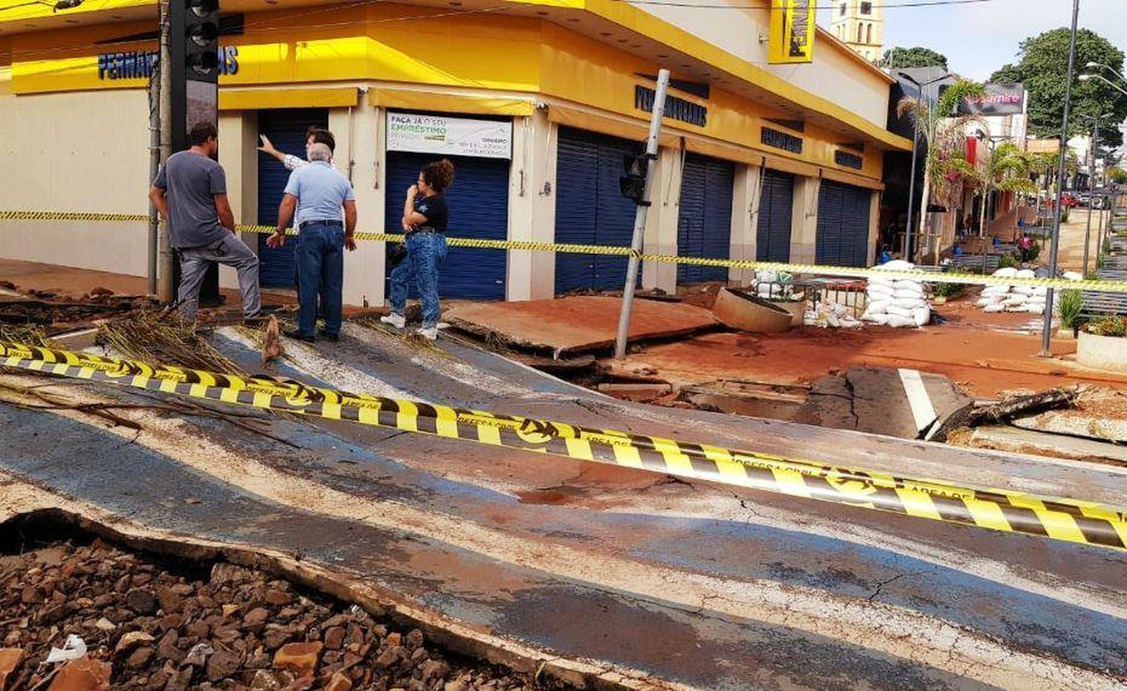Chuva destruiu área do calçadão em São Carlos — Foto: A CidadeON/São Carlos
