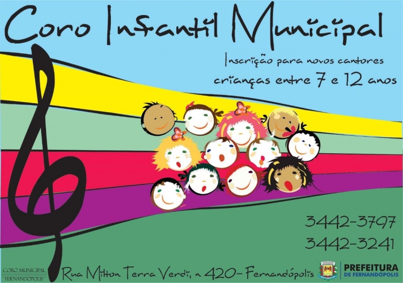 A Secretaria Municipal de Cultura desenvolve as aulas do “Coro Municipal Infantil” para a garotada com idade entre 07 a 12 anos. A principal proposta projeto é despertar o interesse das crianças nos mais variados aspectos e de forma divertida, trabalhando a coordenação motora e promovendo o crescimento intelectual, inclusão, desenvolvimento da escuta e do trabalho em grupo.