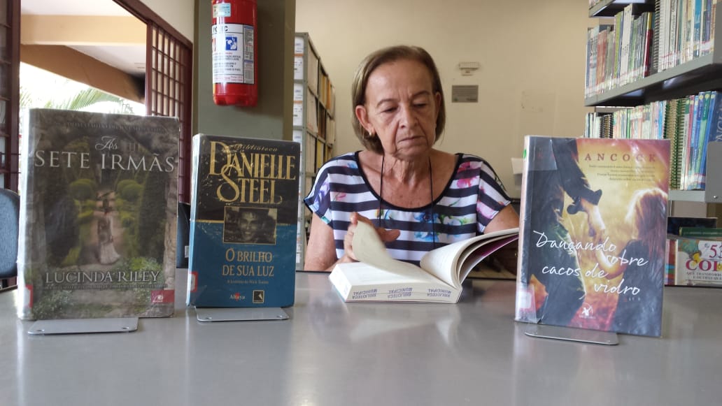 "Adoro vir a Biblioteca Municipal de Fernandópolis, pois sempre encontro livros interessantes e novos, que inspiram minha criatividade e favorecem o meu conhecimento", diz Celia Destáquio Buono, que além de consulente participa do Projeto Opinião do Leitor.