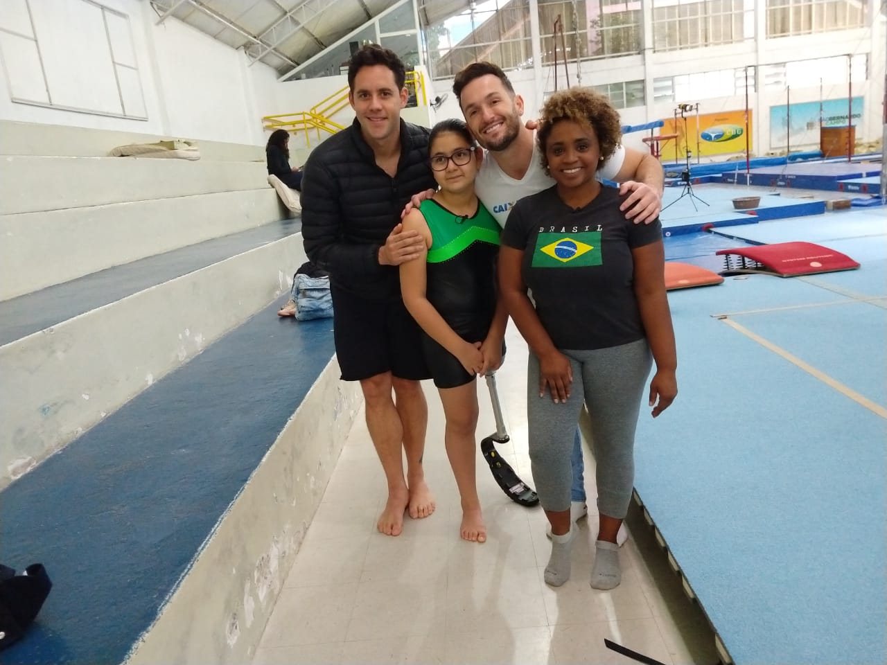 No Cento de Treinamento Olímpico, a garotinha Laura Morgon foi recepcionada pelos medalhistas da ginástica, Diego Hipólito e Daiane dos Santos