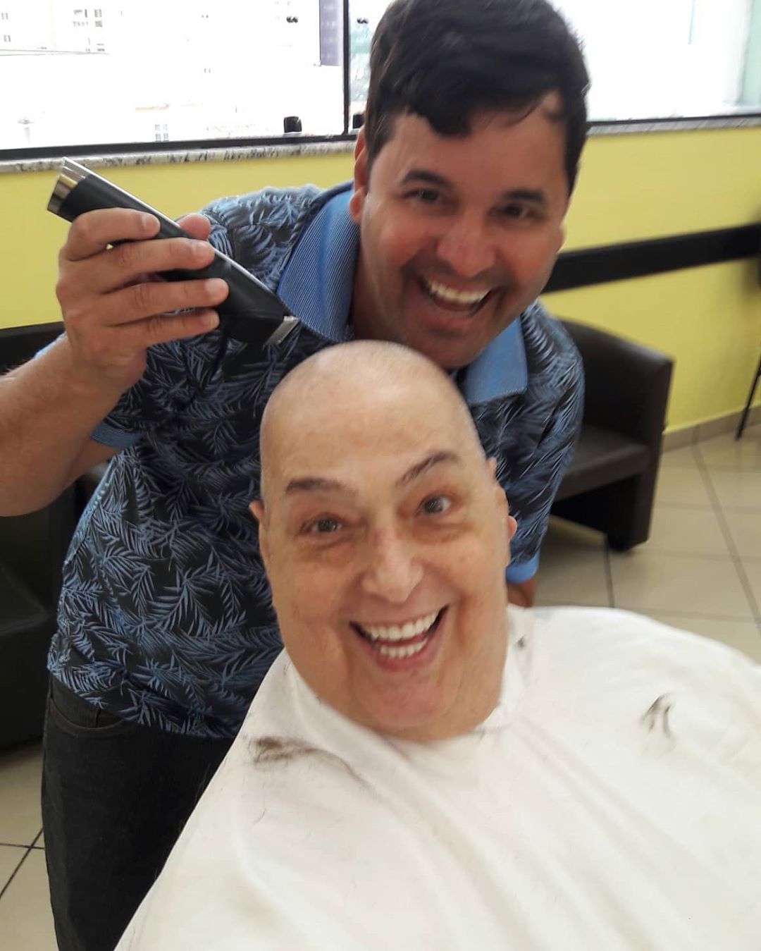 Como parte do tratamento, Mamma tem passado por sessões de quimioterapia e radioterapia. Nesta sexta-feira (17/01), ela publicou duas fotos em que aparece já com os cabelos raspados ao lado de seu atual namorado.
