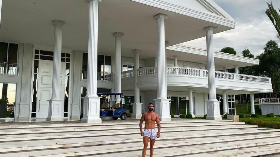 Apelidado de 'Embaixador' no mundo sertanejo, Gusttavo Lima viu sua mansão viralizar na web após ele posar em frente a residência, que fica na fazenda do artista, em Goiás.