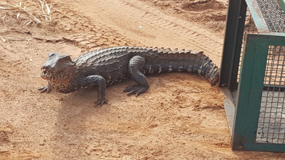 Polícia Ambiental captura jacaré de 1,5 metro de comprimento dentro de instituição da região