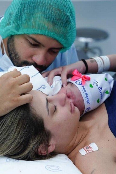 O artista dividiu na rede social o momento do nascimento em família e mostrou a bebê