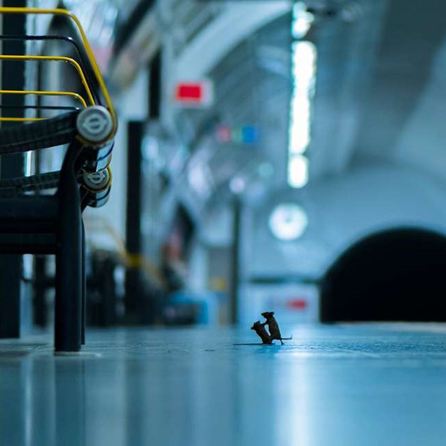 A briga dos animais aconteceu em uma estação de metrô, onde o fotógrafo ficou por cinco noites registrando os roedores. O pedaço de comida que eles disputavam tinha sido deixado por um passageiro.