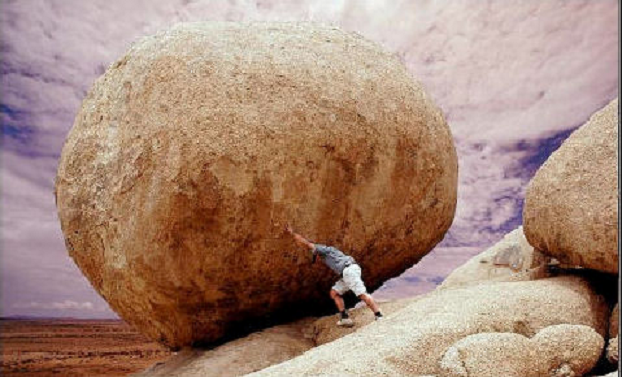 - Você tem empurrado essa pedra por tanto tempo, e ela ainda não se moveu. Não acha melhor desistir?
