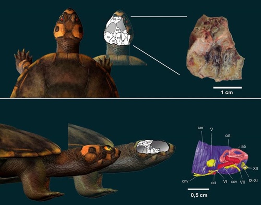 De acordo com Guilherme, a tecnologia ajudou os pesquisadores a descobrir todos os ossos e a ver aspectos internos como cavidades responsáveis por abrigar partes sensoriais da cabeça da tartaruga.