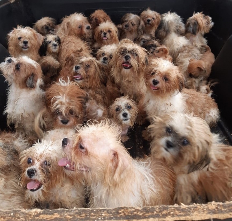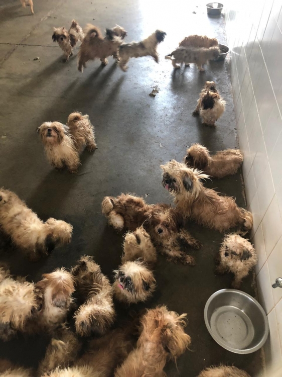 No local foram encontrados 66 cachorros da raça shitzu - 60 adultos e seis filhotes - que estão sendo levados para avaliação veterinária.