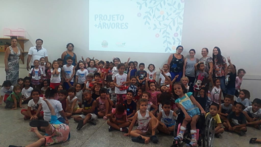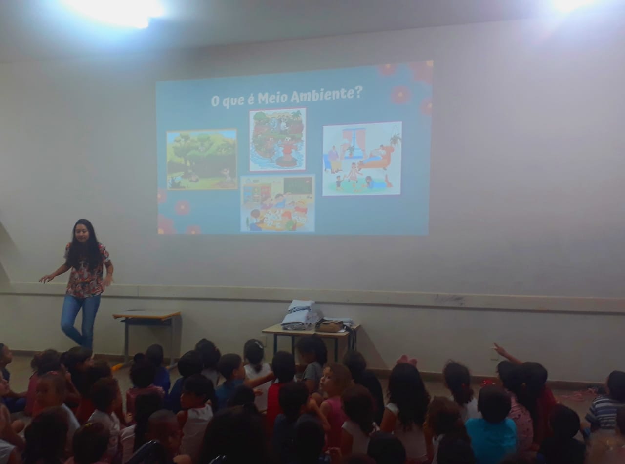 A palestra é uma das ações programadas no projeto ” + Árvores”. Foram abordados junto às quatro turmas de crianças de 05 a 06 anos, temas como o que é meio ambiente, biodiversidade, educação ambiental, de onde vêm as plantas e o porquê precisamos delas, degradação ambiental e o que podemos fazer para preservar as árvores.